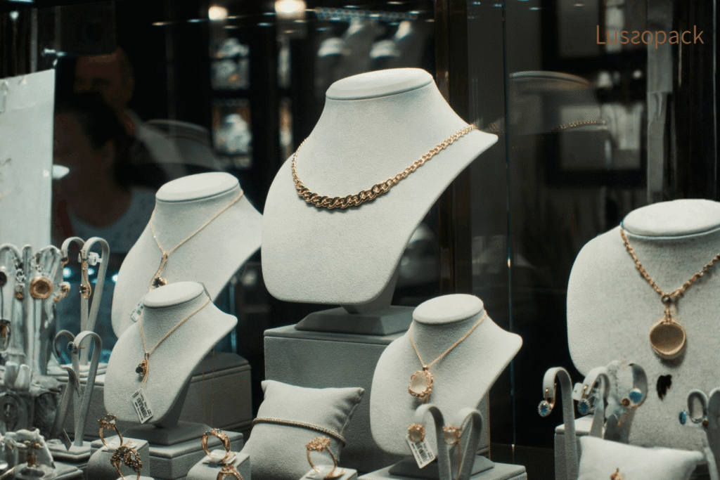 This is where packaging becomes part of your visual merchandising ideas for jewelry. It carries the same mood, colors, and quality cues that customers saw in your store, just in a format they can hold in their hands.